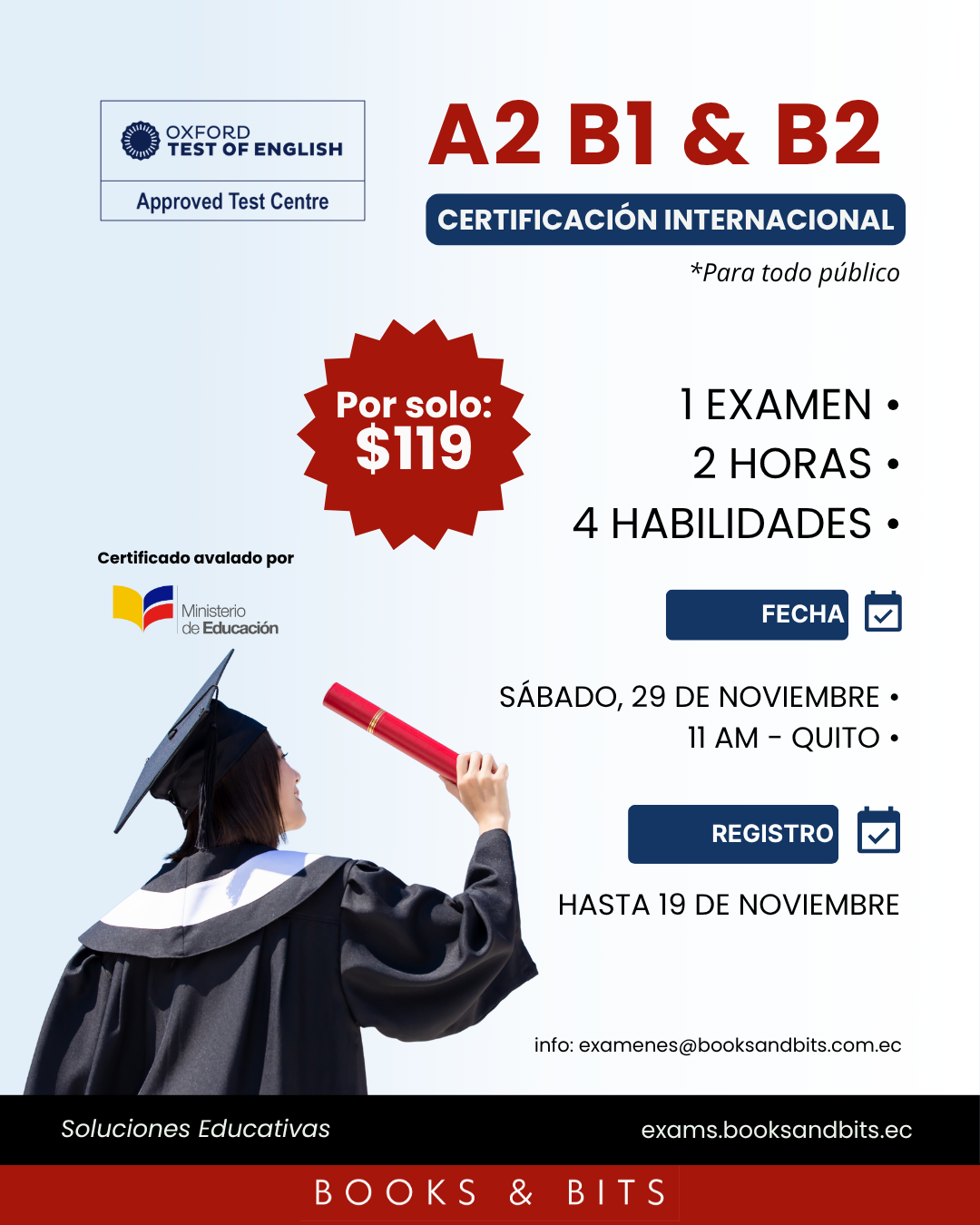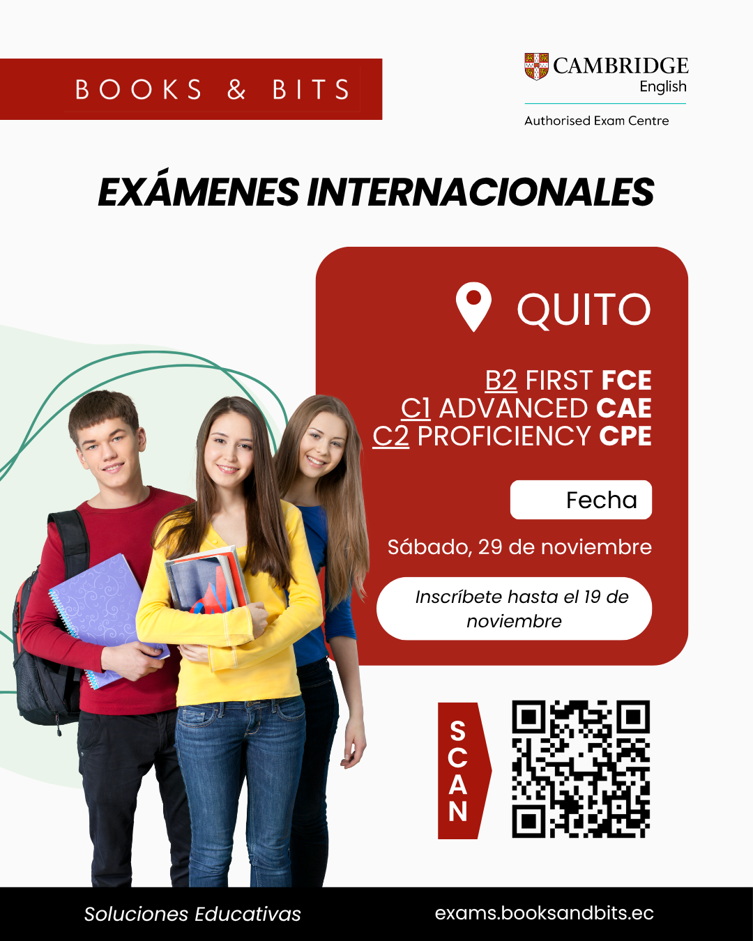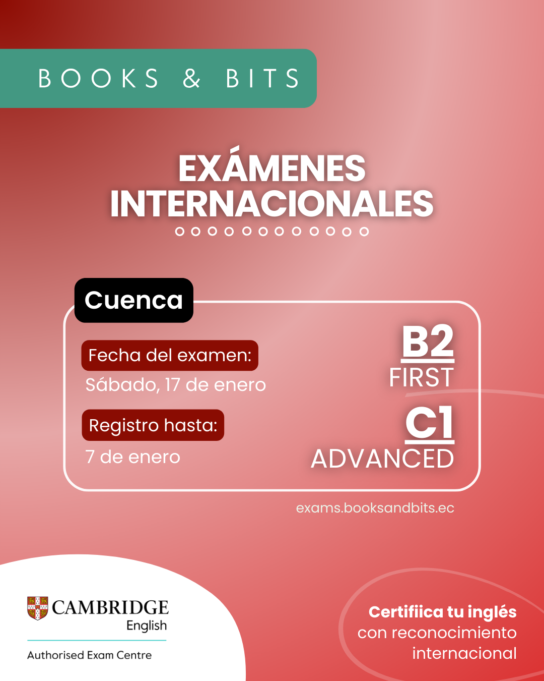 Sign UpPrepárate con BB Academy, centro autorizado de Cambridge. • 25 horas de preparación por Zoom • Certificado de asistencia • Examen y certificado oficial Cambridge Examen presencial: Sábado 13 de diciembre Quito | Guayaquil | Loja | Machala | Cuenc